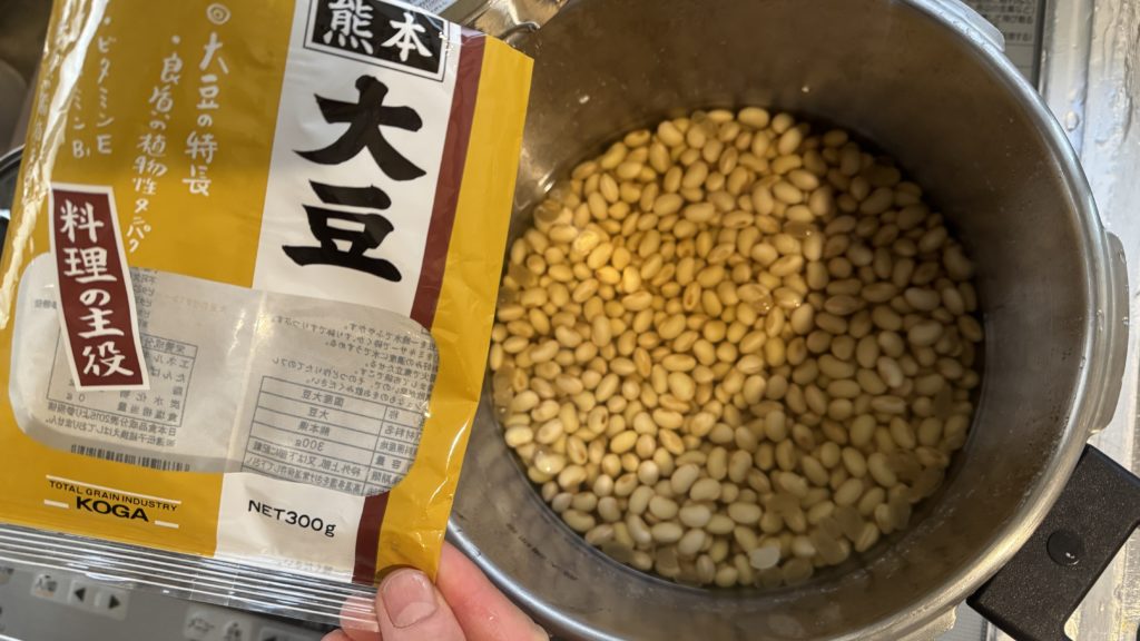 キッチンでプロテインを摂取したその足で、大豆を煮ます。