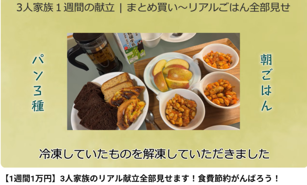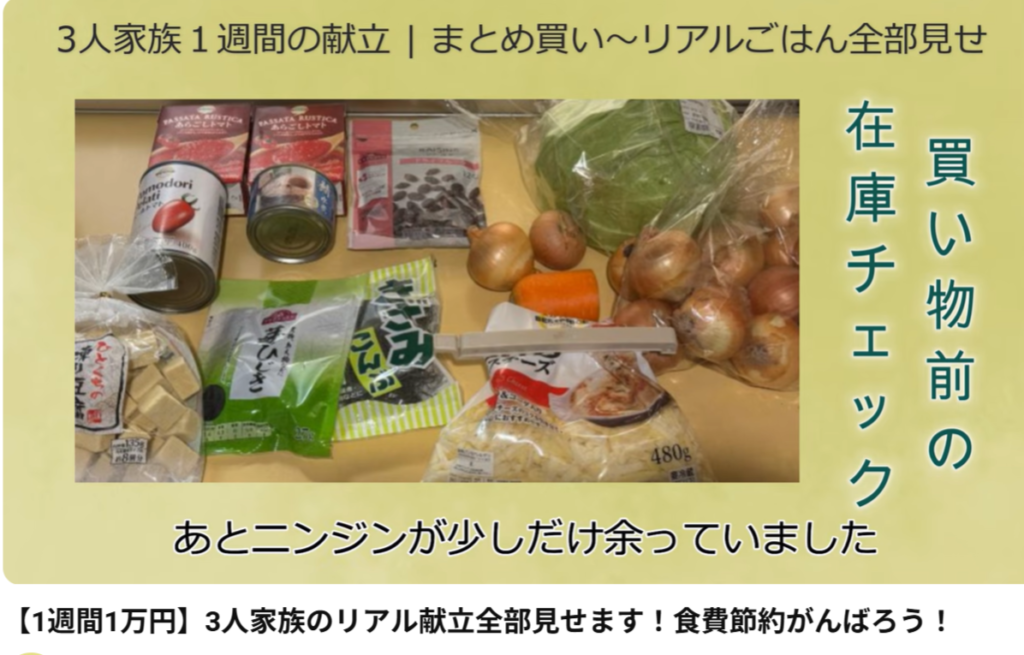 ブログにアップしていた1週間まとめ買い~毎日のごはんをYouTubeに上げましたので是非ご覧ください。